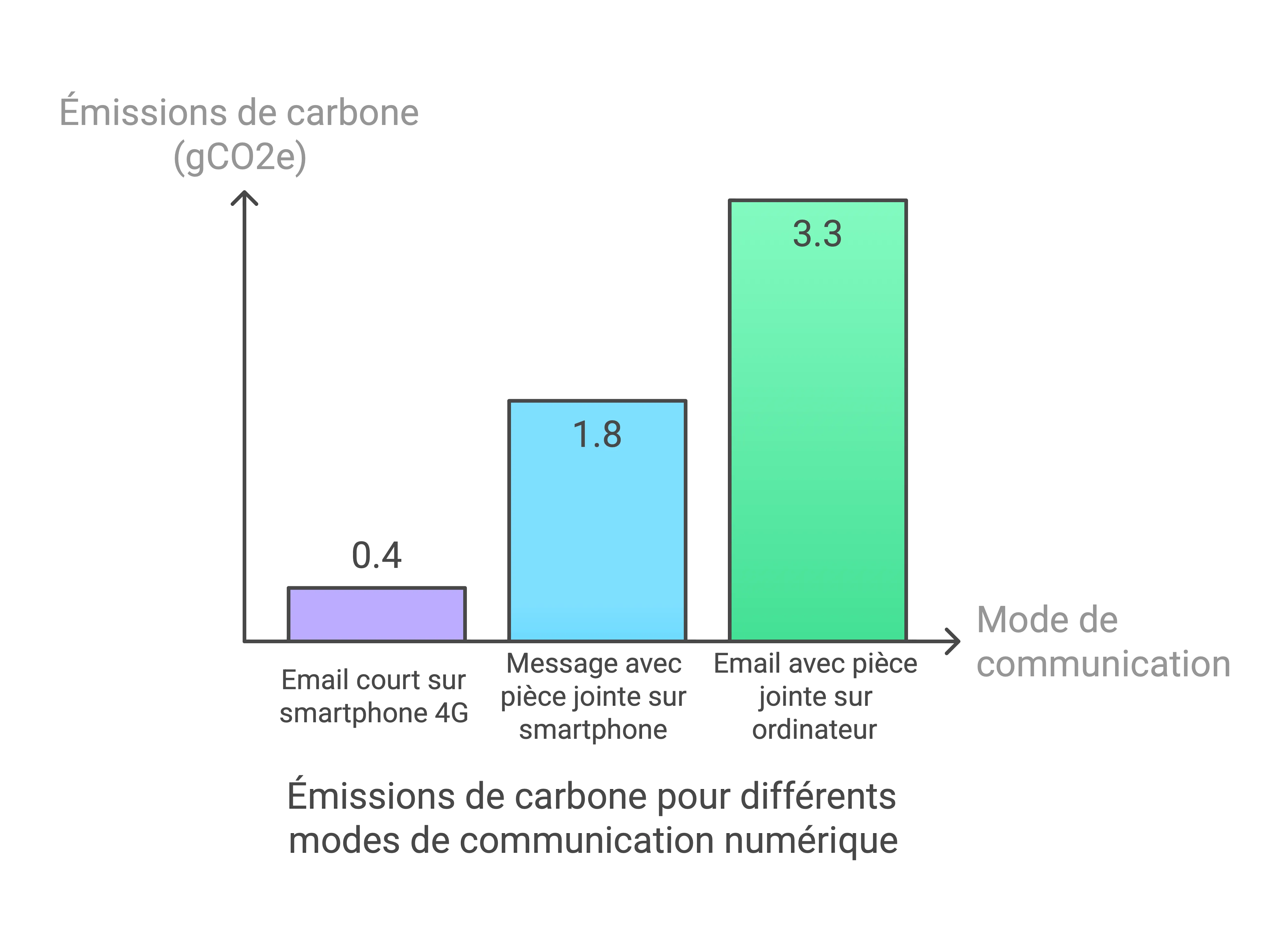 - Un email avec pièce jointe (1 Mo) sur ordinateur : 3,3 gCO2e