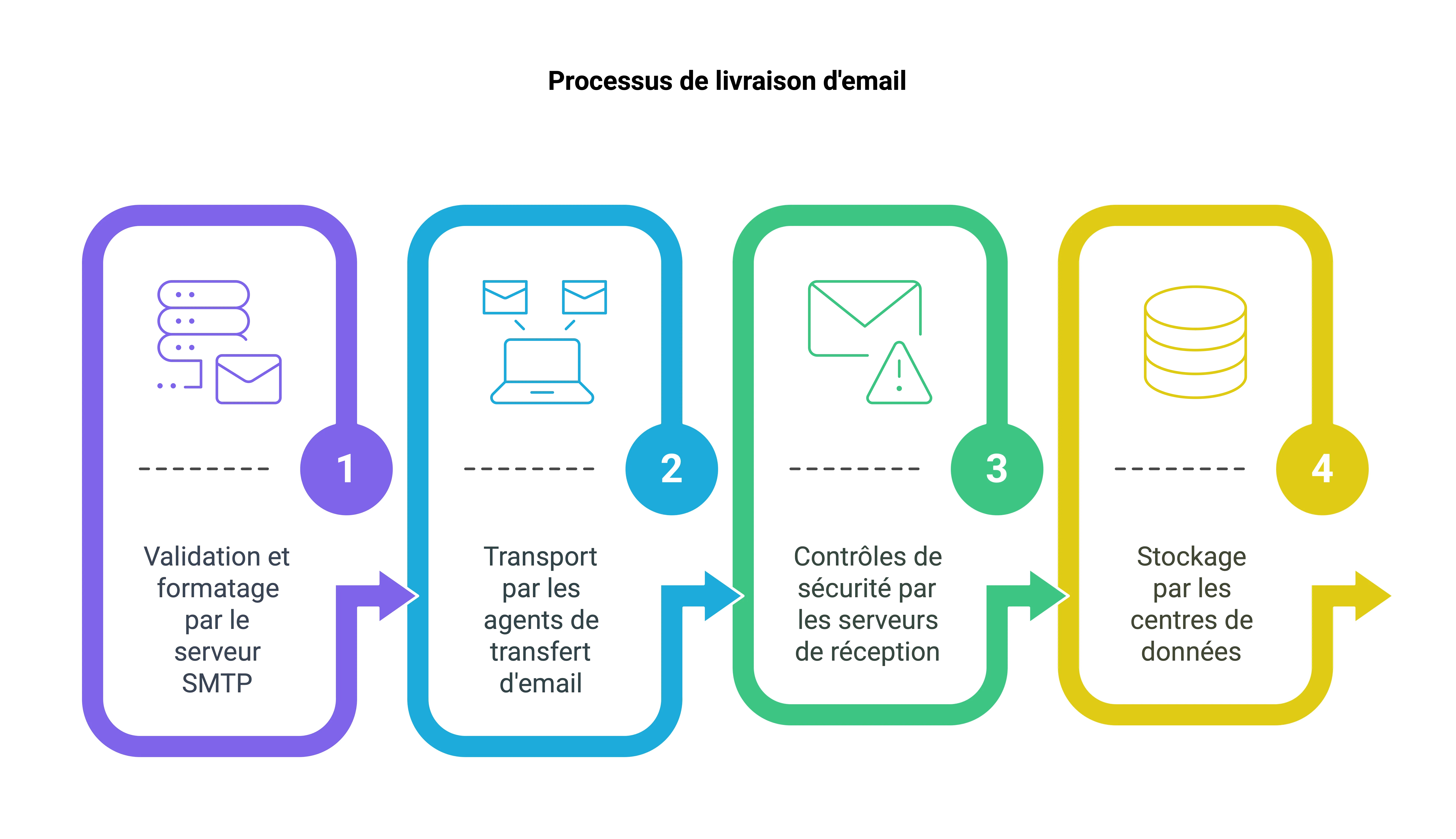 Le processus d'acheminement d'un email suit plusieurs étapes essentielles :