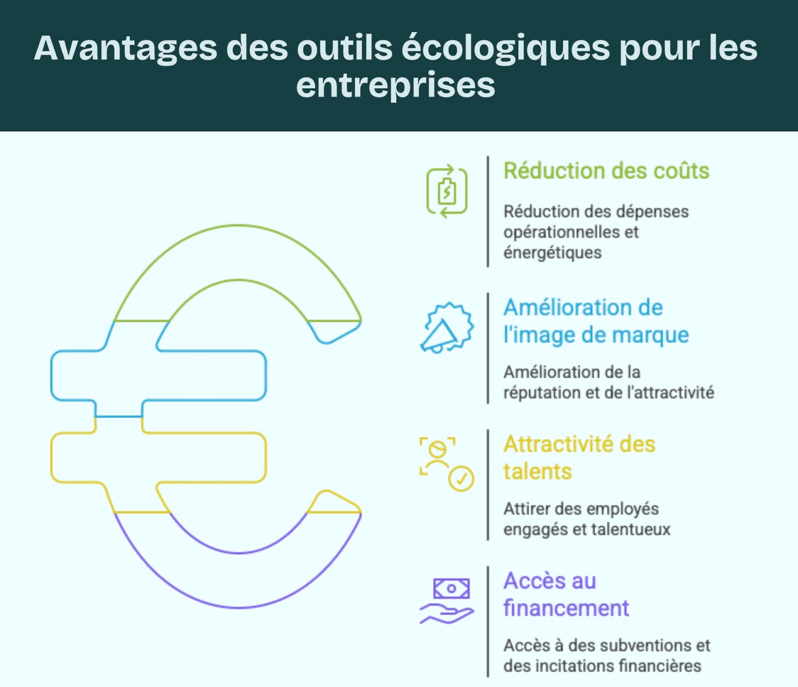 Les outils écologiques permettent de réduire les coûts opérationnels et énergétiques grâce à une meilleure gestion des ressources.