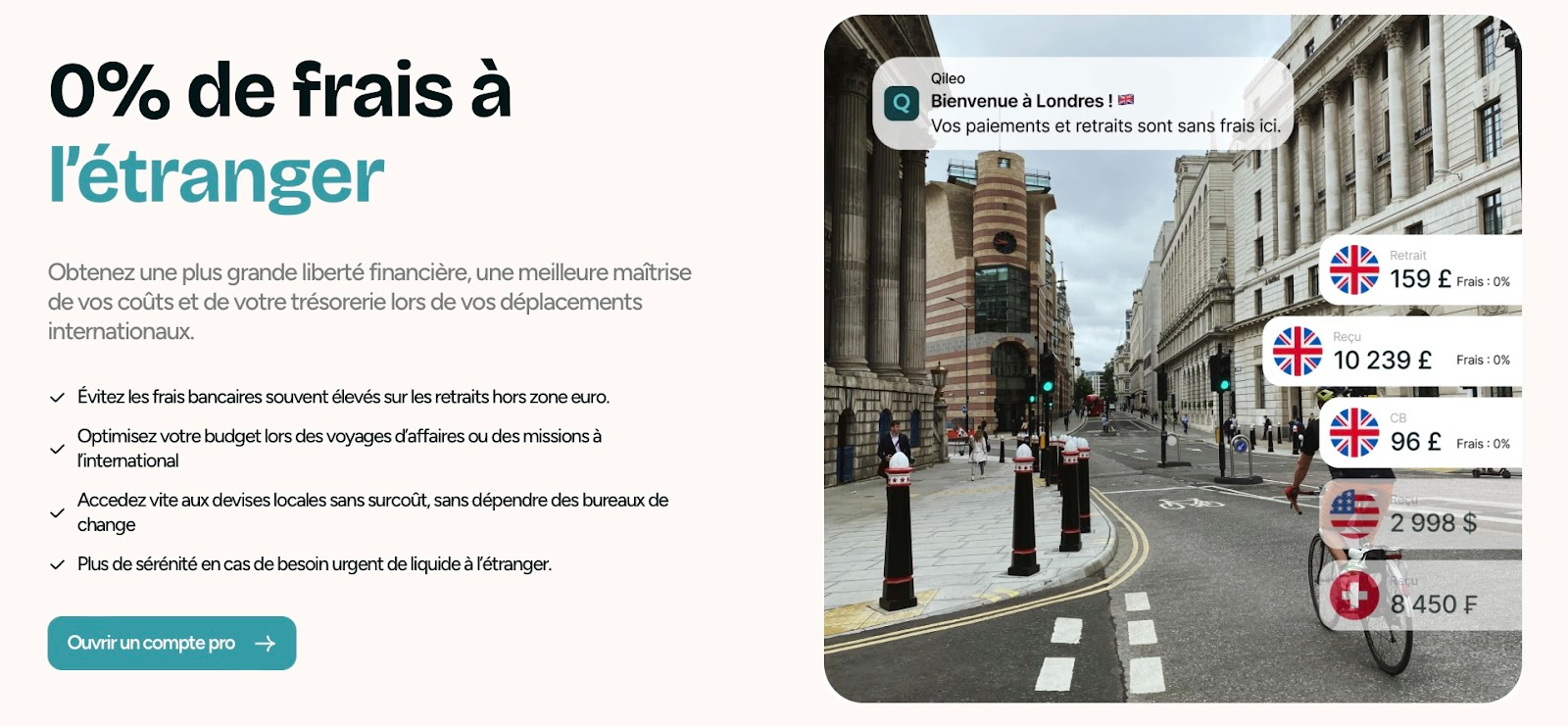 Qileo facilite également votre gestion quotidienne avec zéro frais à l’étranger et des paiements simplifiés, que ce soit pour vos opérations locales ou internationales.