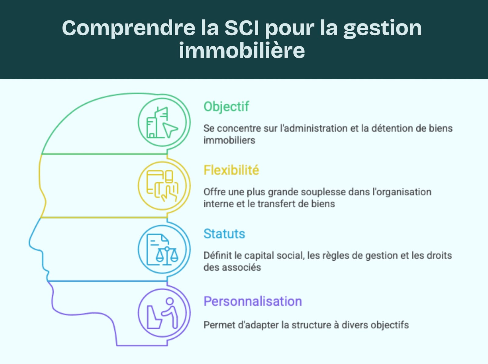 Elle permet une gestion souple et personnalisée des biens immobiliers, tout en facilitant la transmission des actifs grâce aux parts sociales.